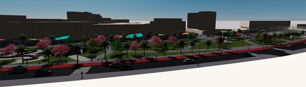 El proyecto consiste en una propuesta de reactivación social y económica de la zona, planteando el soterramiento de la existente vía de tren y su adecuación para la función propuesta, planteando para ello diferentes zonas y actividades. Éstas son, entre otras, eliminación de una de las vías rodadas y planteamiento de otras, zona deportiva, zona de descanso, zona de terrazas, zona comercial y zona de sombras mediante lonas, a modo de conexión con la nueva estación de tren.